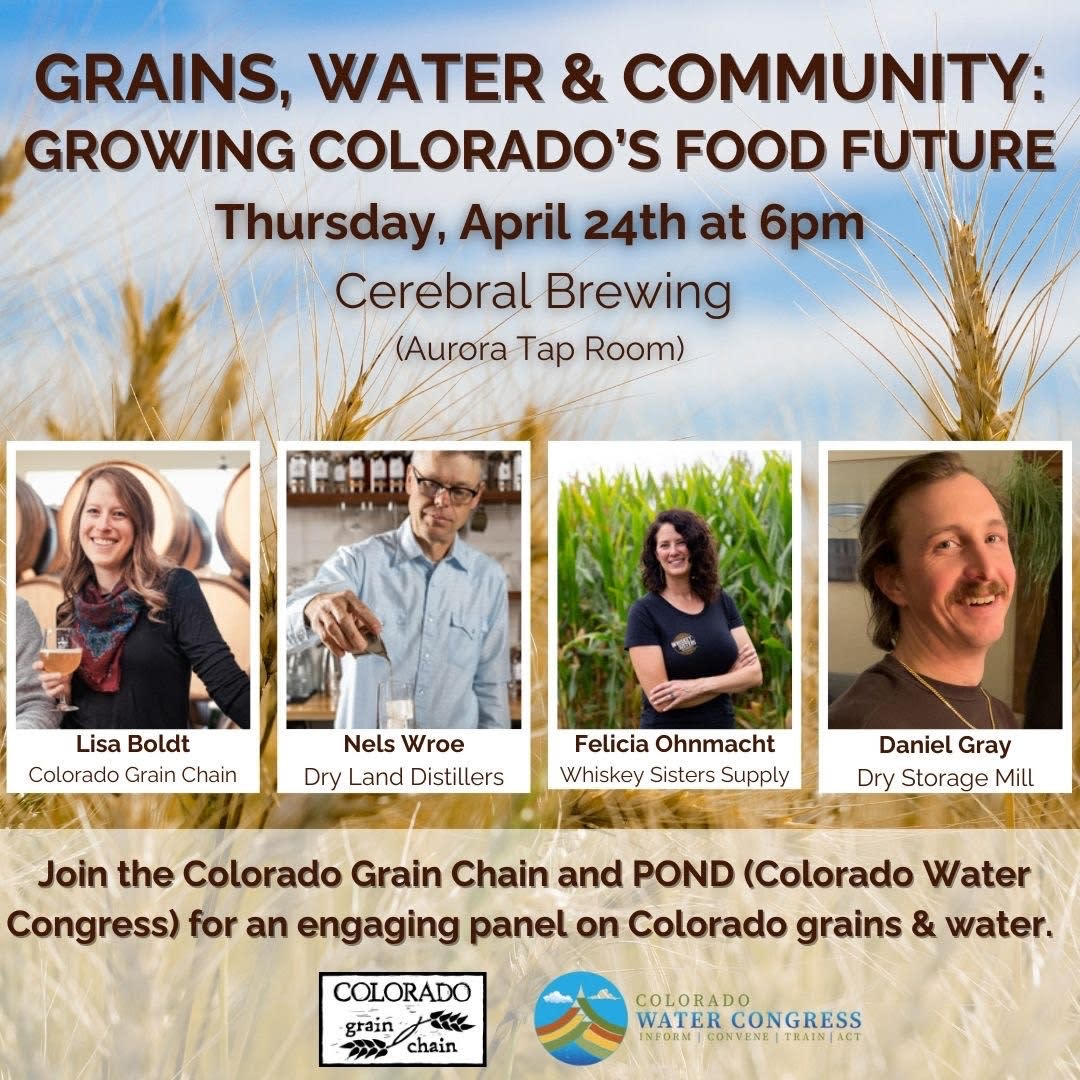 POND is excited to announce an upcoming event in partnership with the Colorado Grain Chain happening on Thursday, April 24th. The event will be a panelist discussion about the Grain Chain and their work to support the Colorado Grain Economy. There will be 5 total panelists from across the grain industry in Colorado from producers to end users. It will take place starting at 6pm at Cerebral Brewing's Aurora Taproom, located at 9990 E Colfax Ave, Aurora, CO 80010. The event will be capped at 35 total people and we are excited to enjoy a night of learning more about the Grain Chain while drinking delicious beer.
